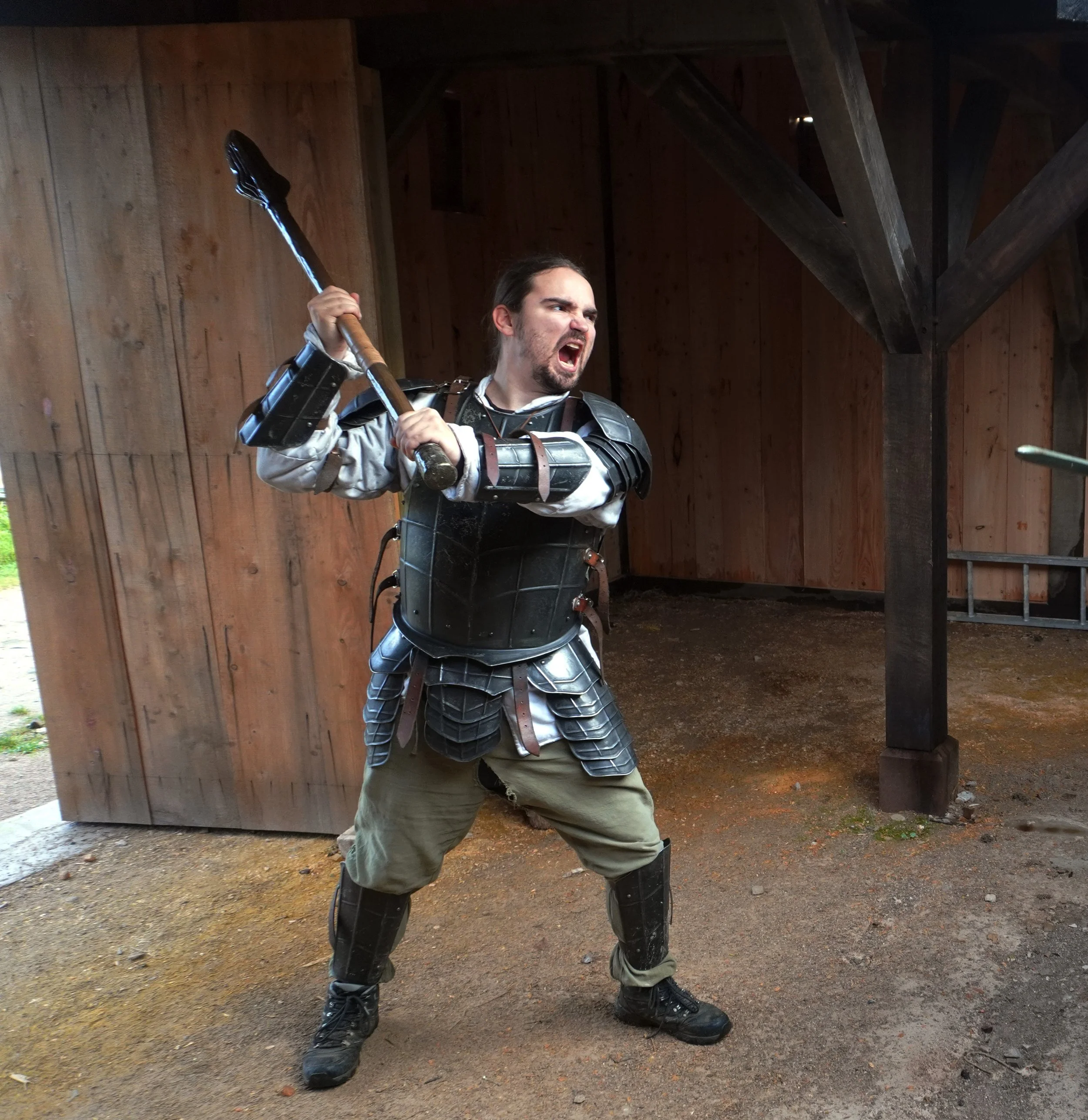 Targets that are struck by an unblocked might call in the torso will immediately be reduced to 0 hit points and fall to their bleed count. If the target is struck directly against their worn heavy armour or they are wearing superheavy armour, they instead take two points of damage.